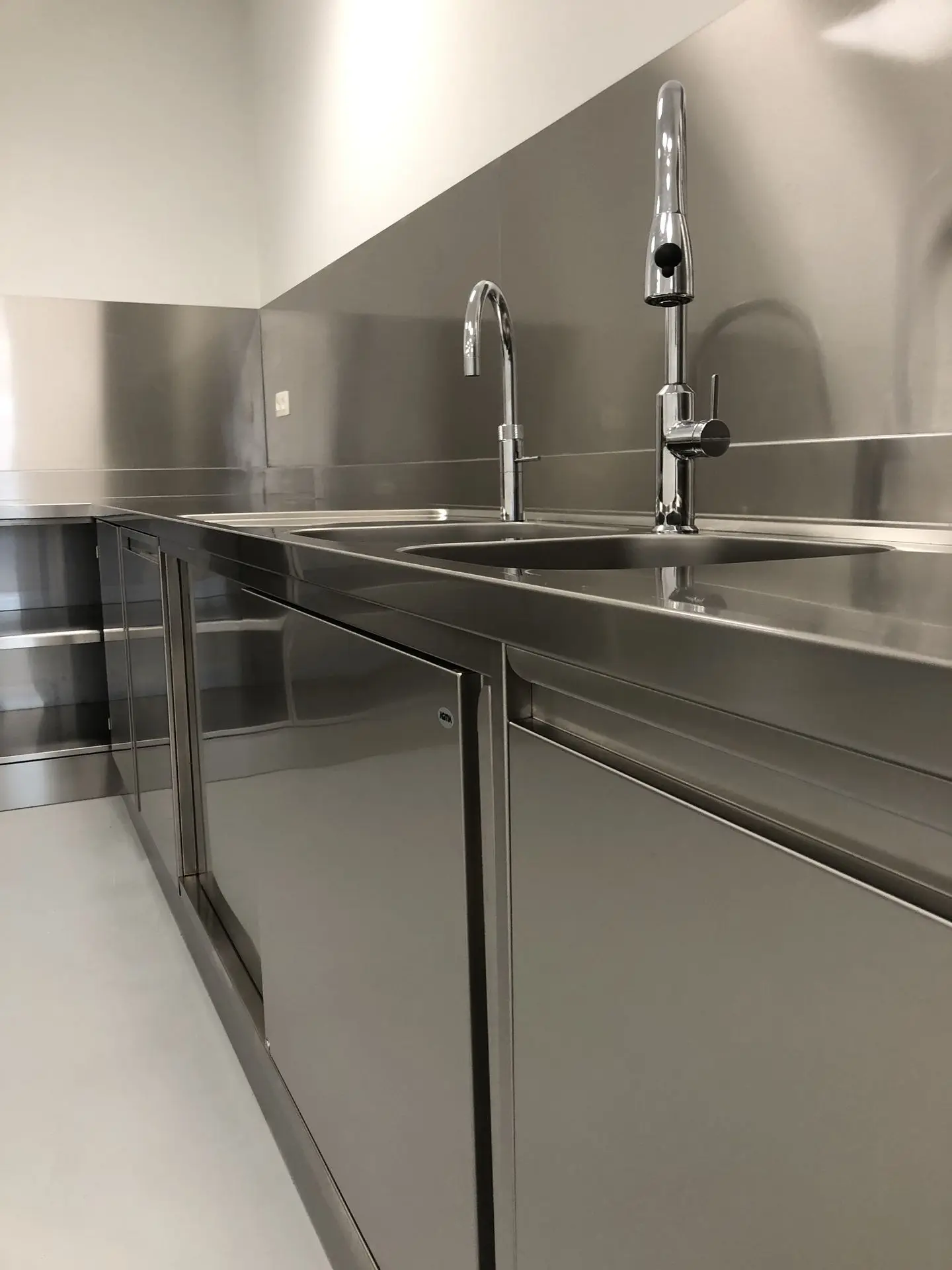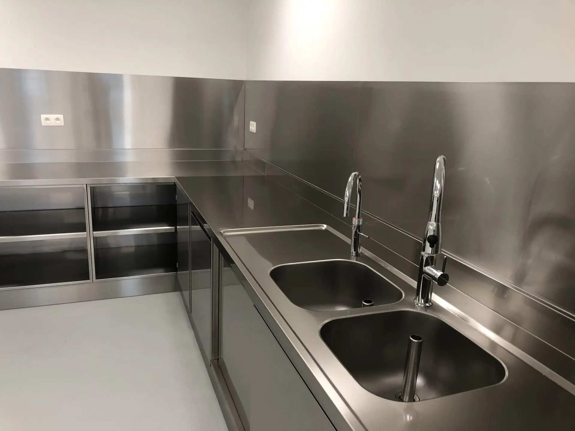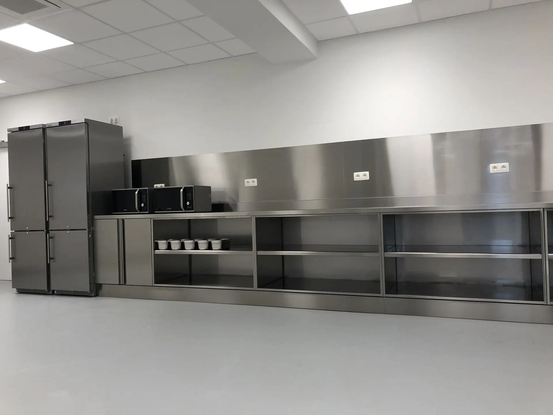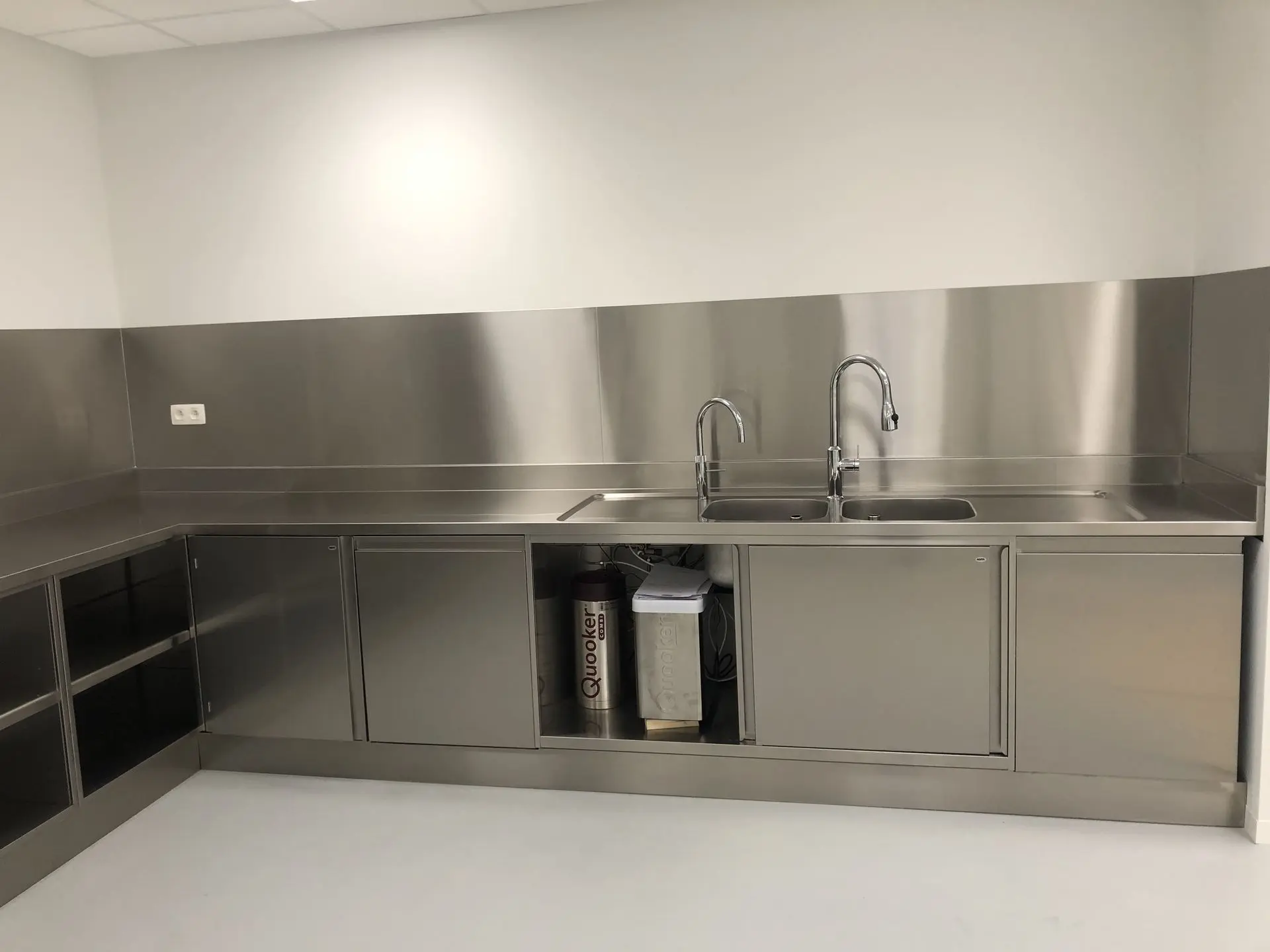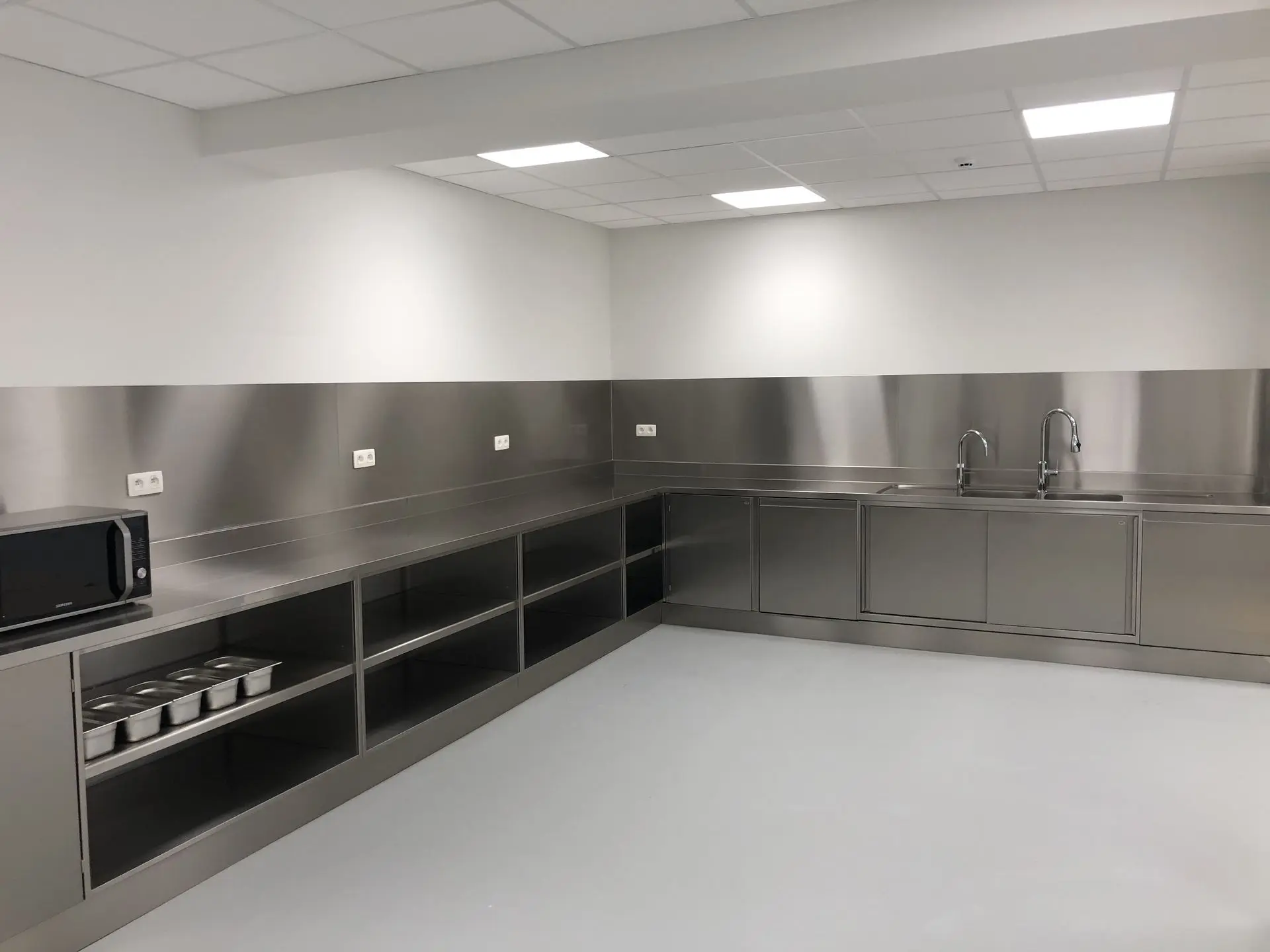 In samenwerking met bouwfirma Bongaerts realiseerden wij een volledig ingerichte bedrijfskantine. Het inox maatwerk, met bijhorende professionele toestellen en de inox spatwanden geven de ruimte een hoogwaardige en functionele uitstraling.